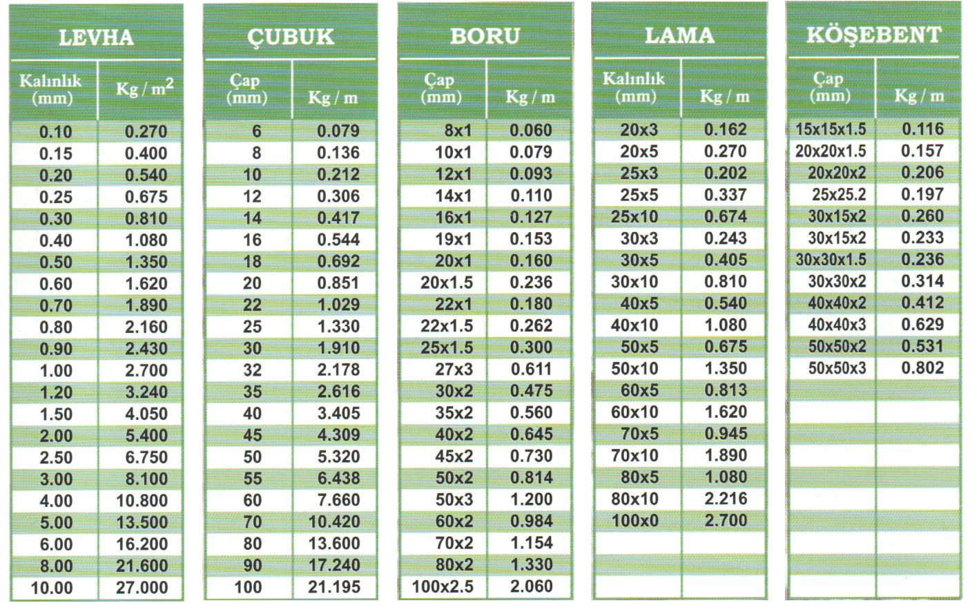 Çubuk, Boru, Köşebent, Lama, Şerit, Rulo, Levha, Profil, Plaka